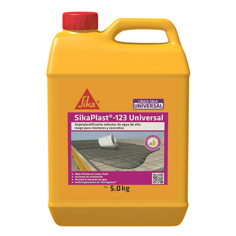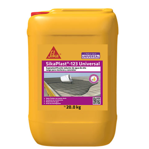 SikaPlast®-123 Universal es un aditivo líquido, superplastificante reductor de agua de alto rango para morteros y concretos con polímeros (policarboxilatos) que mantienen la trabajabilidad de la mezcla por mayor tiempo. No contiene cloruros.