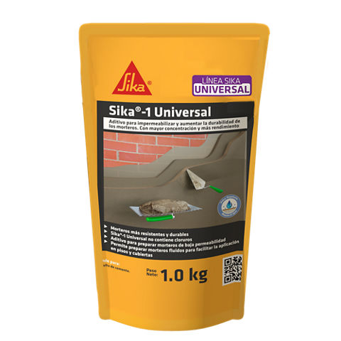 Sika®-1 Universal Es un aditivo líquido mejorado con polímeros sintéticos que actúa como impermeabilizante integral taponando poros y capilares en morteros. Aditivo para preparar morteros de baja permeabilidad, hidrorepelente, bloquea el agua.