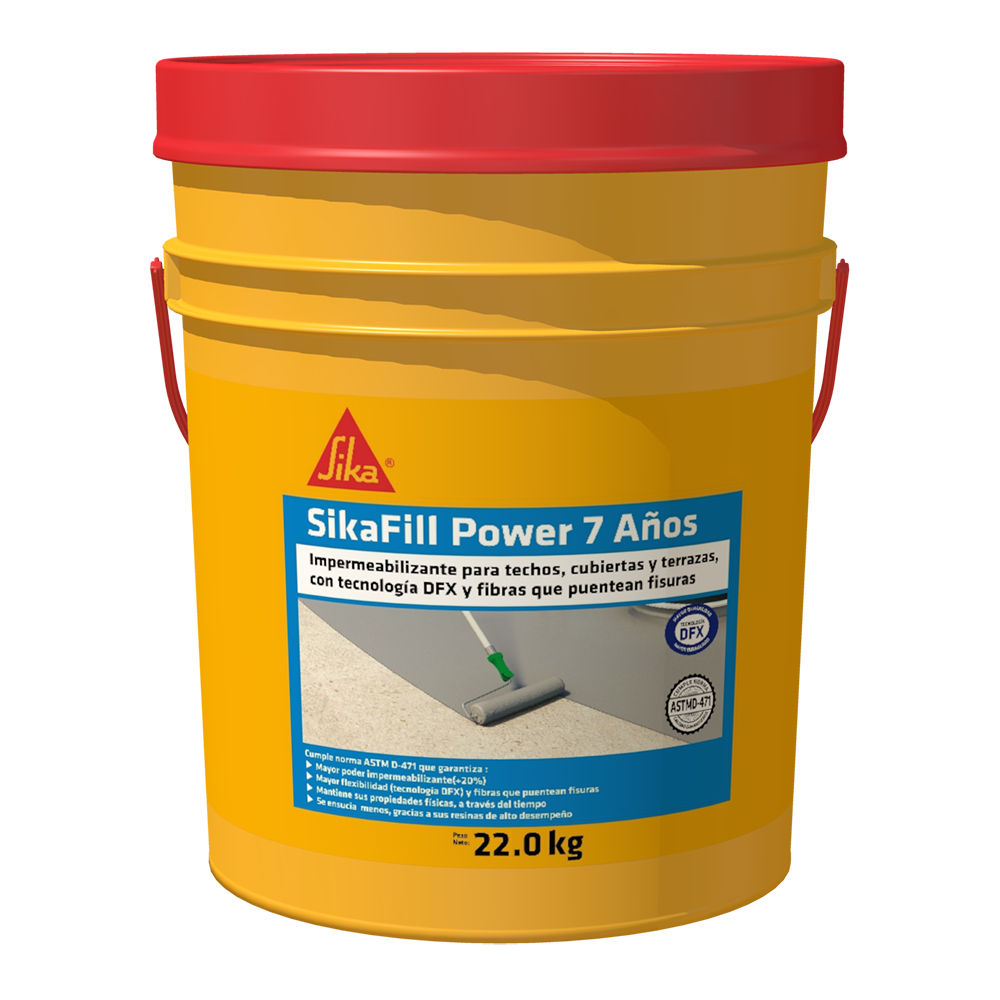 SikaFill®-7 Power CO es un recubrimiento elástico con base en resinas acrílicas para la impermeabilización flexible de cubiertas, techos y terrazas. Este producto viene con fibras que le permiten puentear mejor las fisuras del sustrato.