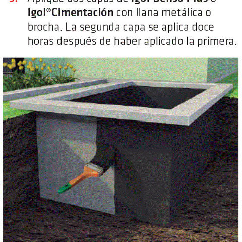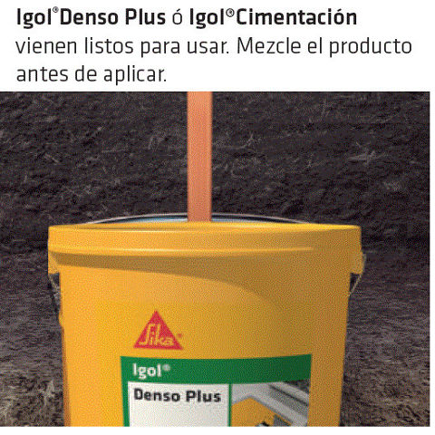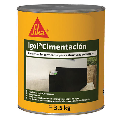 Igol® Cimentaciones es una solución de asfaltos refinados reforzada con elastómeros, adhesivos y compuestos plastificantes, resistente al vapor. No contiene alquitranes y no es emulsión.