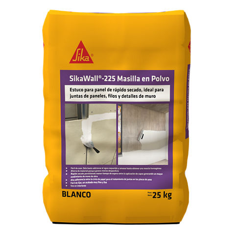 SikaWall®-225 Masilla en Polvo es un producto de alta adherencia especial para el tratamiento de juntas en sistema liviano para placas de yeso. No presenta contracción. Por su rapido secado, entre 15- 25 minutos permite generar mayores rendimientos disminuyendo los tiempos de aplicación entre capas.